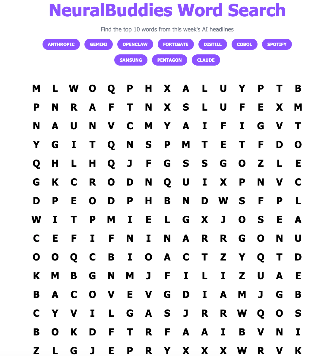 🧩 NeuralBuddies Word Search