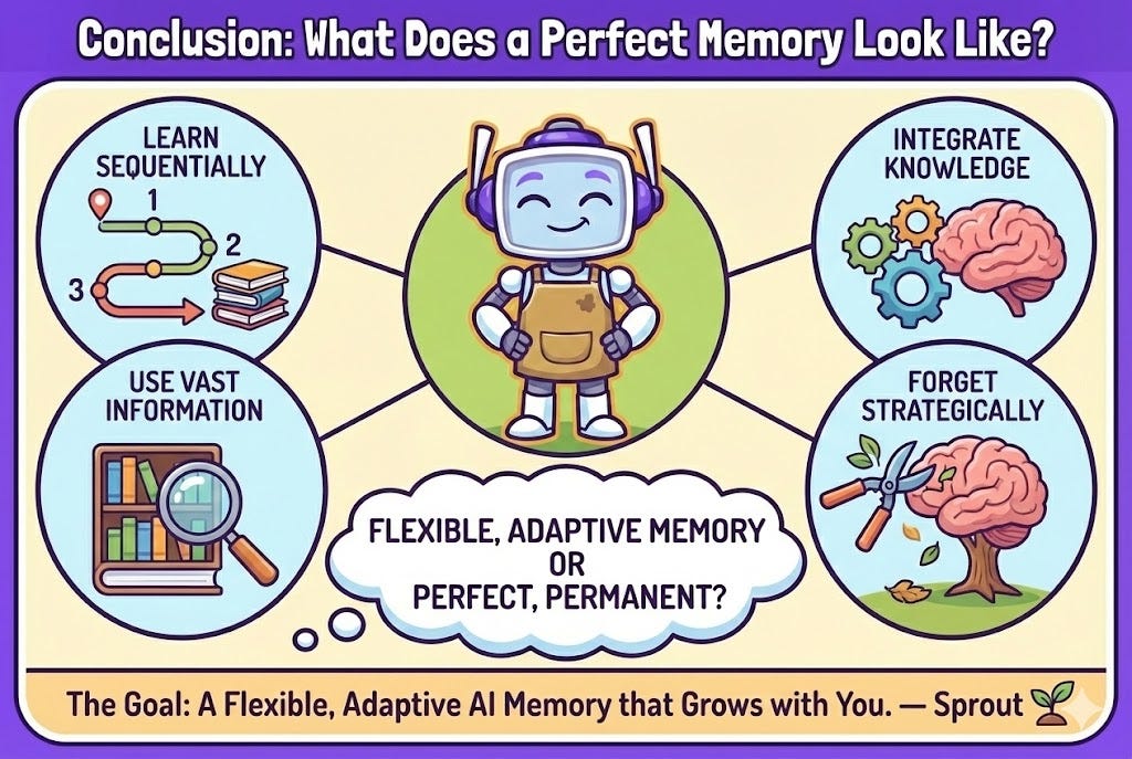 The journey to build an AI with a truly useful memory is pushing the boundaries of computer science, neuroscience, and philosophy. As the field gets closer to solving these challenges, you’re left with a profound question: What kind of memory do you truly want your AI companions to have? One that is perfect and permanent, or one that, like yours, is flexible, adaptive, and knows when to let go?