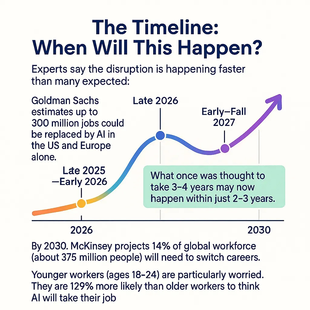 Financial Services & Banking: The World Economic Forum predicts 30% of jobs could vanish by 2030, especially middle management roles.